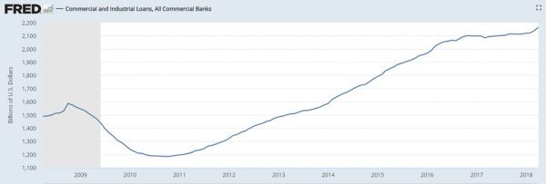The legislation we are discussing came into effect in mid-2010, right where the growth in commercial and industrial lending started to grow steadily. Recent changes mean that the threshold at which banks are deemed systemically important was lifted from US$50 billion in assets to $250 billion in assets, meaning thousands of banks are now subject to more lax oversight.